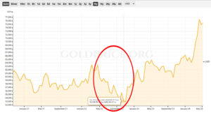 Sokan szeretnek euróba, dollárba, más valutába fektetni, amit erősen aggályosnak tartok. A fenti példánál maradva, 2022 októberében az arany unciánkénti ára leesett 1615 dollárra, a dolláré pedig felment 430 forintra. Itt írtam erről: https://aranyhozo.hu/a-dollarorulet-margojara/